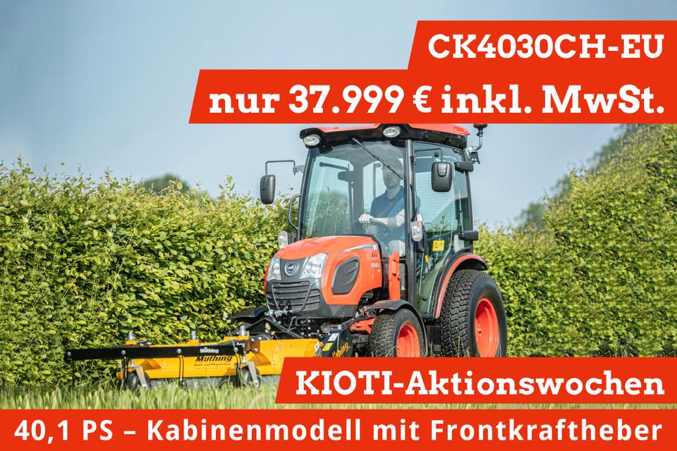 KIOTI Aktionswochen Allradtraktor KIOtI CK4030-CH mit Kabine und Frontkraftheber, 40,1 PS Neumaschine Preis inkl. Mwst. (31.931,93 EUR netto). Für Rückfragen und weitere Informationen stehen wir Ihnen gern zur Verfügung.