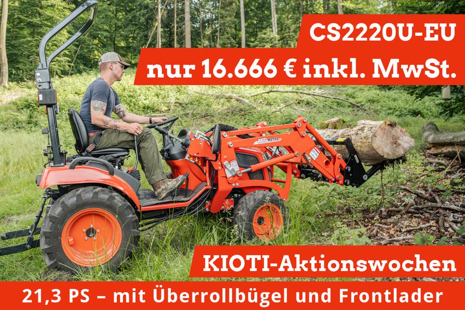 KIOTI Aktionswochen Allradtraktor KIOTI CS2220U-EU Neumaschine 21,3 PS mit Überrollbügel und Frontlader Preis inkl. Mwst. (14.005,04 EUR netto). Für Rückfragen und weitere Informationen stehen wir Ihnen gern zur Verfügung.