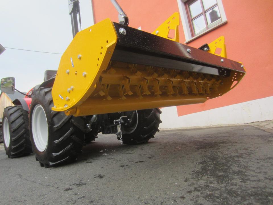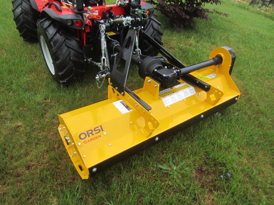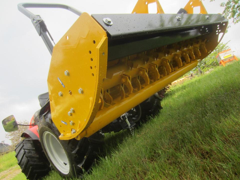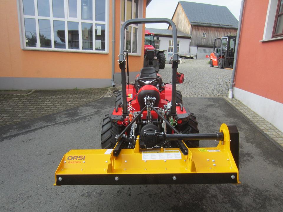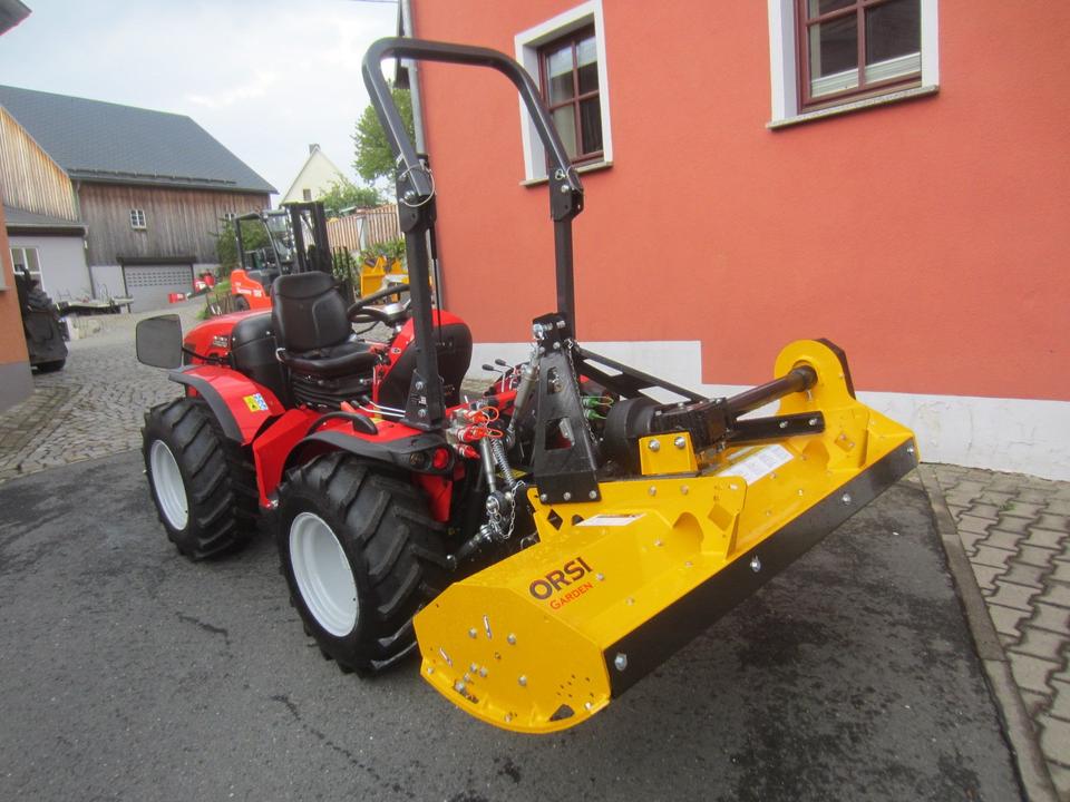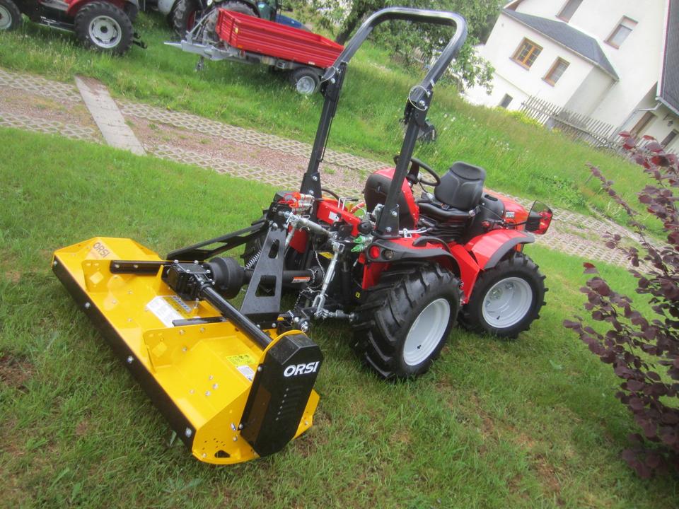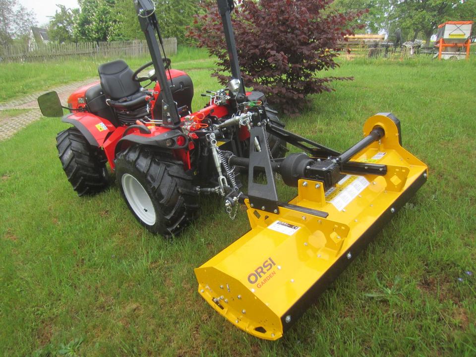 Antonio Carraro TTR 3800 Neumaschine schon mit ORSI Schlegelmulcher im Heck-Schub-Betrieb betriebsfertig montiert