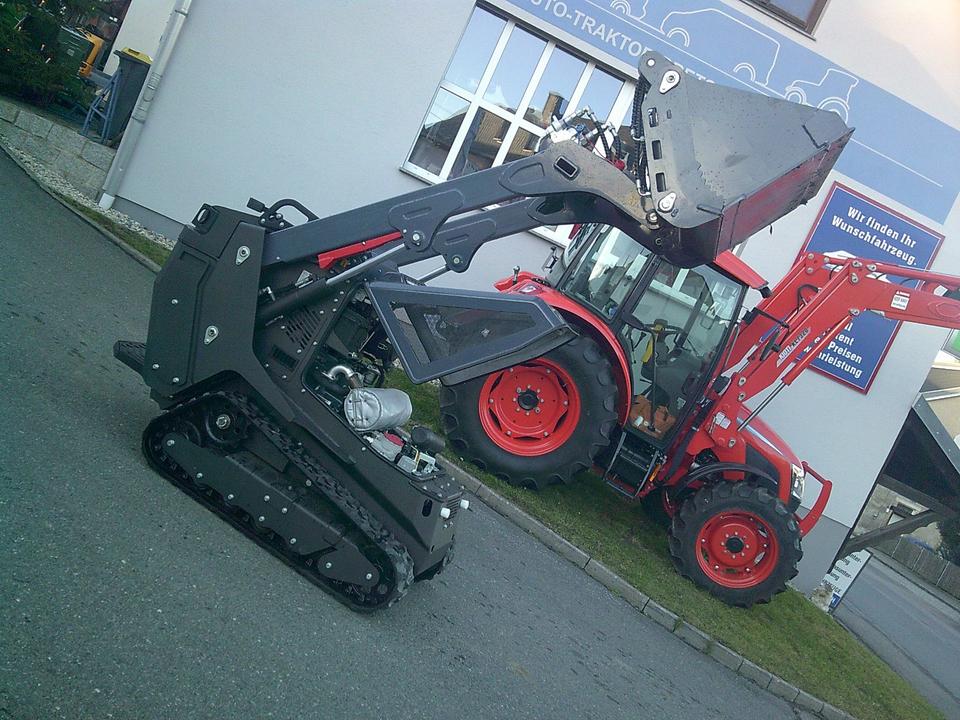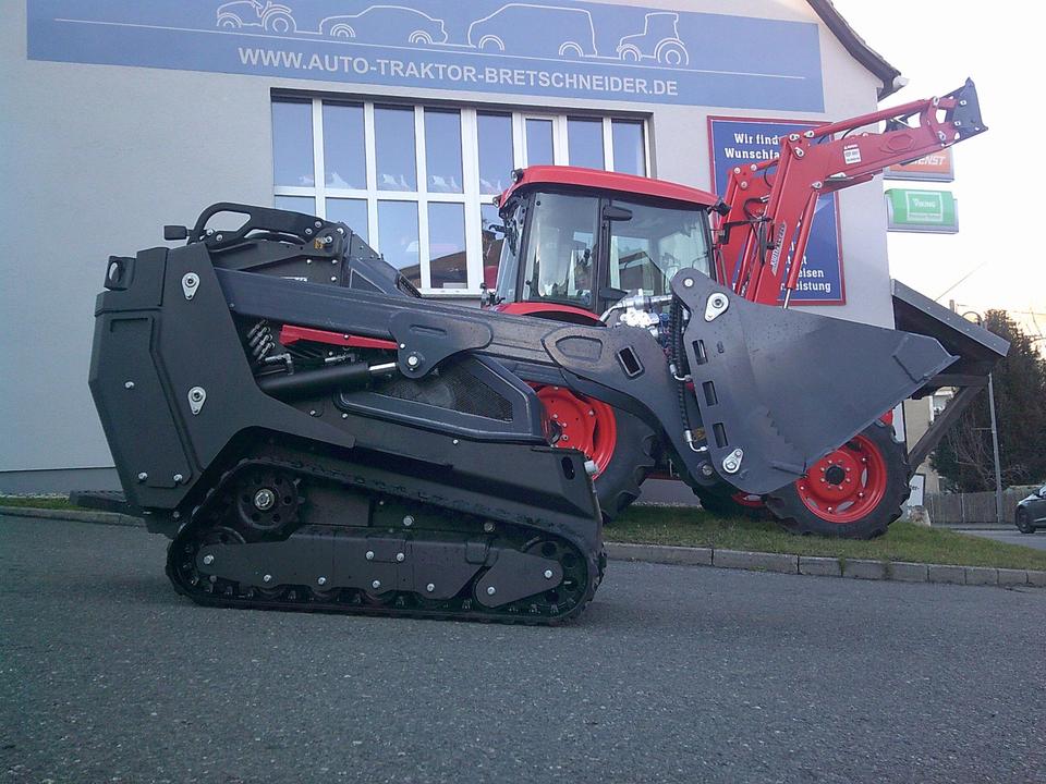 TOYO Kettenlader SKL26 Black Edition incl. Palettengabel und hydraulische 4 in 1 Klapp-Schaufel • Kubota 3-Zylinder Dieselmotor(19kW/26PS) • Hydrostatischer Fahrantrieb von B&P • Hydraulisches Steuergerät von Bucher • Fahrmotor 230bar:14+14cm³ Hub…