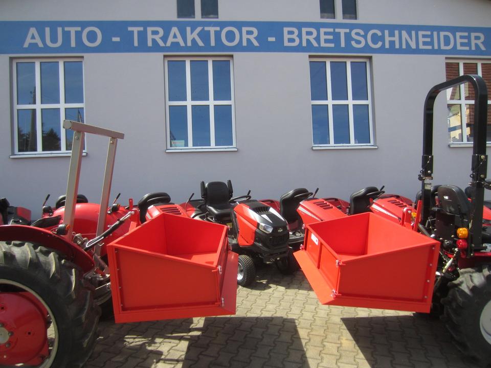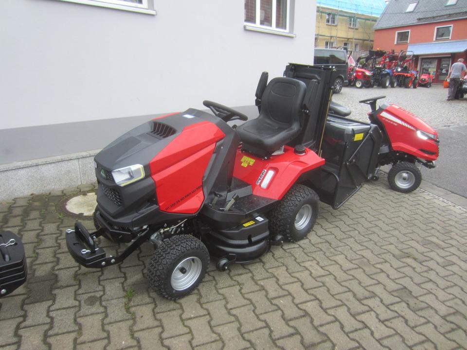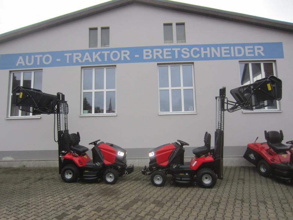 Nachrüstung anderer Räder, Frontlader, Mittelachsmähwerk, Sammelbehälter usw. wäre kein Problem.